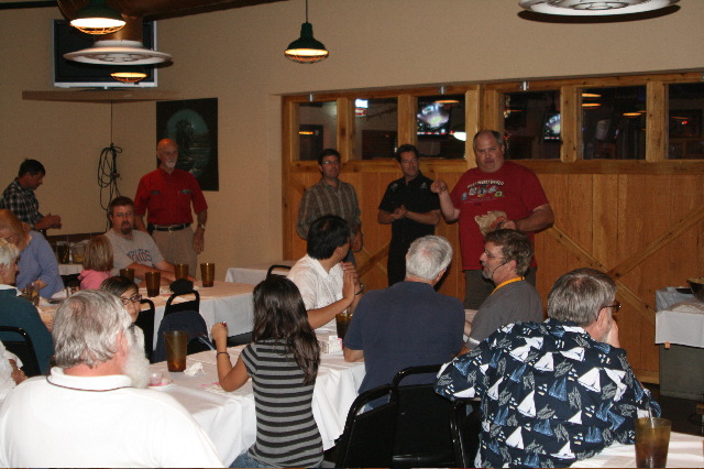 Bill Jensen (left), Matt Morgan, Geoff Notkin and Dr. Art Ehlmann at dinner. Bill's daughter is to the far left.